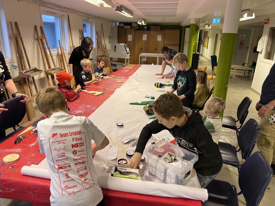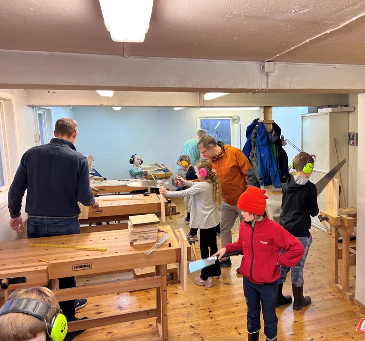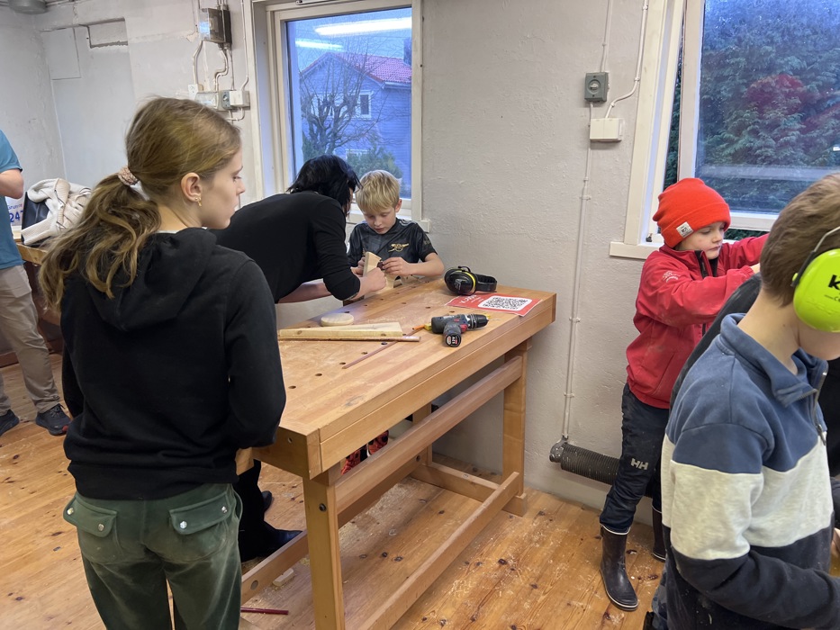 Både voksne og barn koste seg på verkstedet denne dagen.