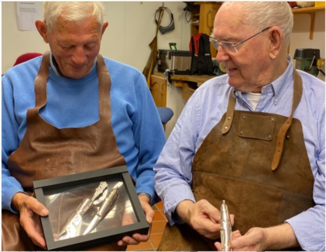 Sølvgruppen på Varatun treffes mandags formiddager, her er Anders Rørheim og Valter Rørheim fast inventar gjennom flere år i sølvsmien