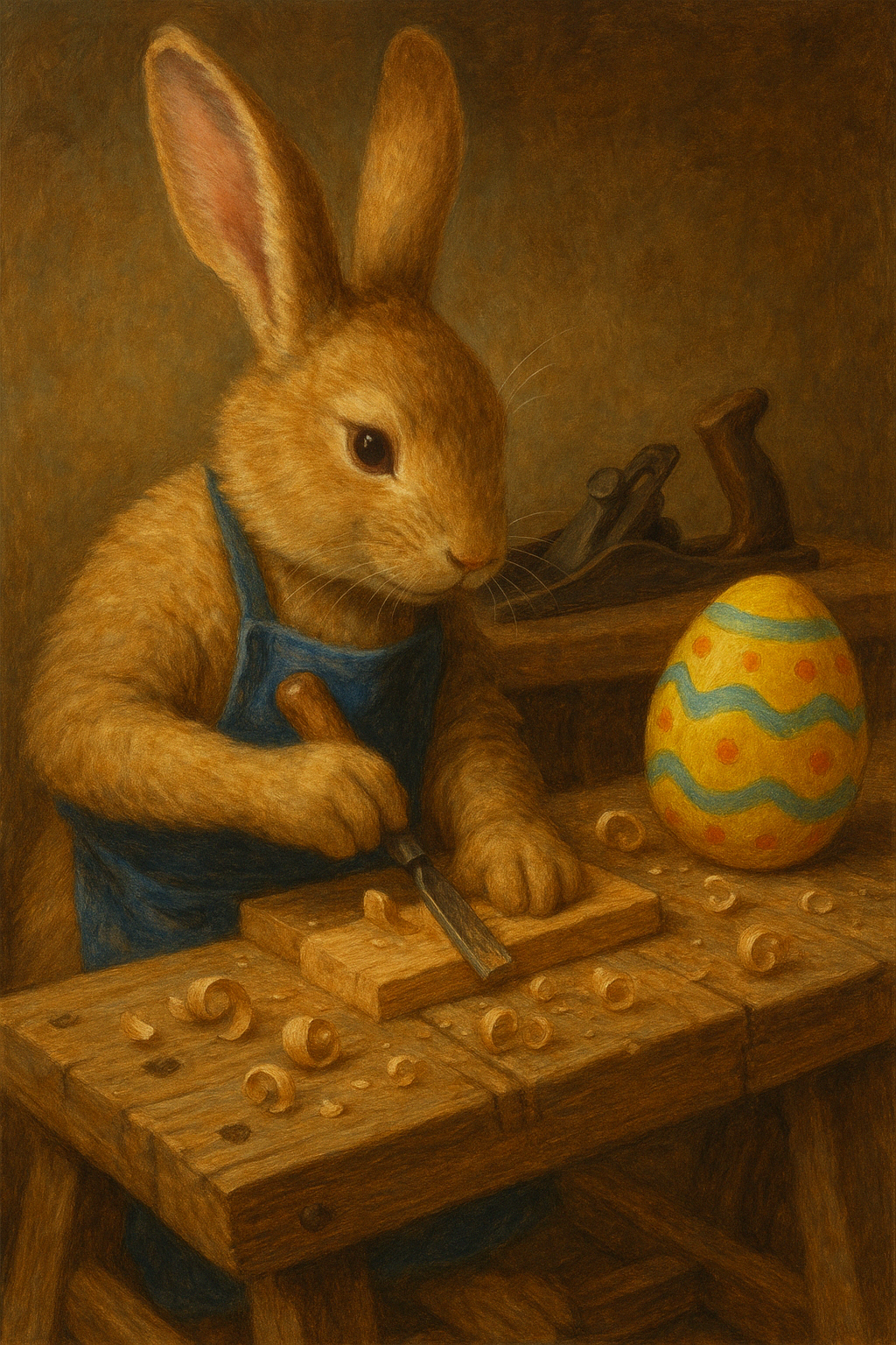 Med et fargerikt og hyggelig påskemotiv av en påskehare i snekkerverkstedet, ønsker klubben alle en fredelig høytid fylt med skaperglede.